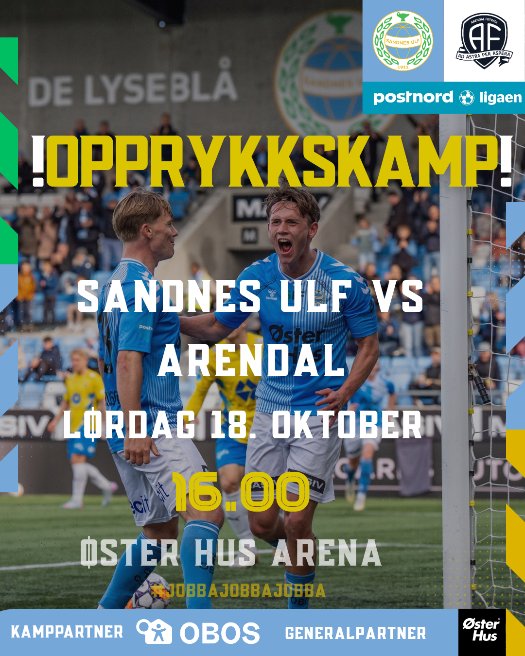 På lørdag, 18 oktober, møter vi Arendal, i en ny opprykkskamp. og jeg håper at Sandnesfolket velger å finne veien til Øster Hus Arena. Stemningen på stadion mot Brattvåg gav gåsehud mot slutten av kampen. Da stod alle og klappet, derfor håper jeg at publikum kommer tilbake også denne gang. Det har spillerne fortjent,