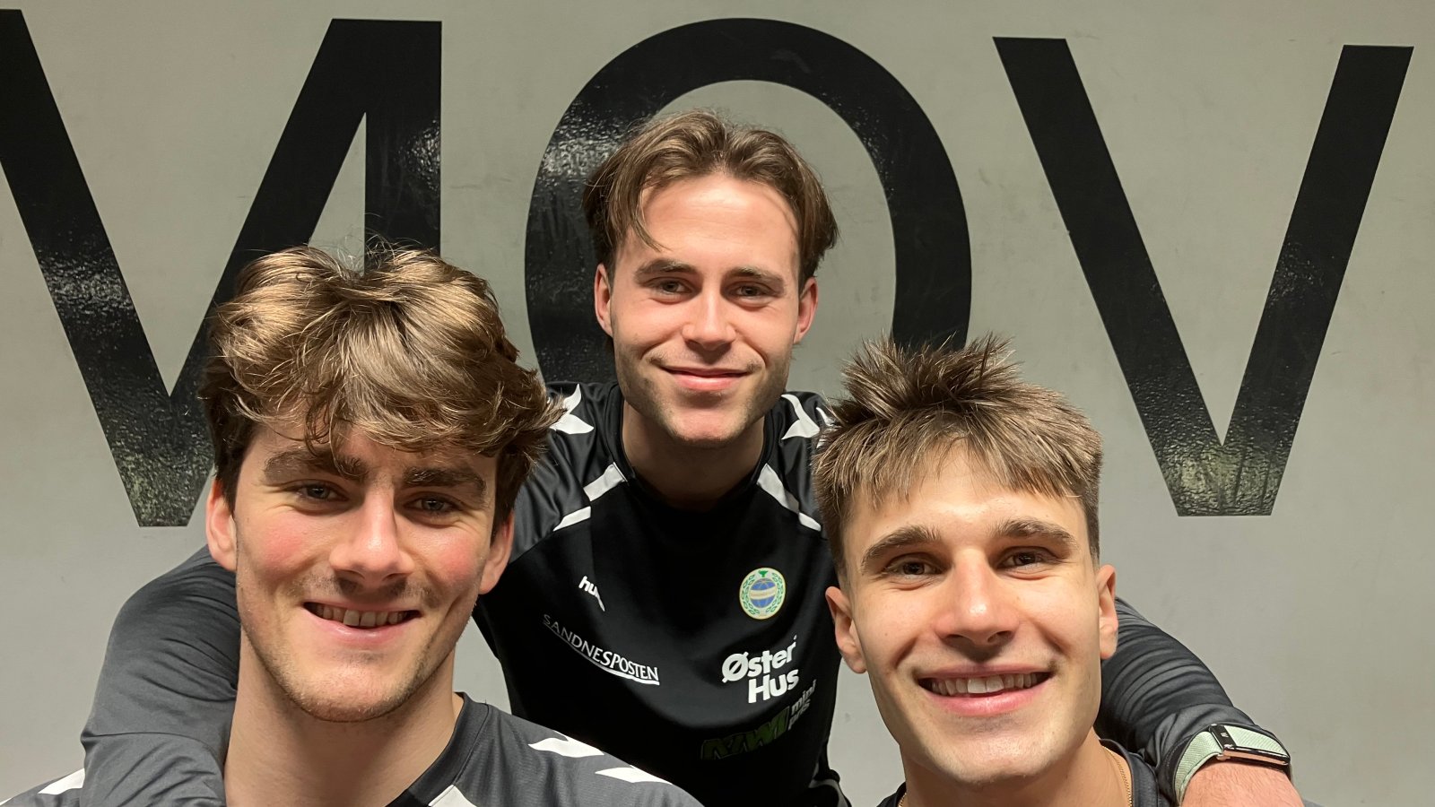 Tre skada spillere på A-laget til Sandnes Ulf. Bak på bildet, Jonas Aune, angriperen som er lengst ute med beinbrudd, tar et godt kameratslig tak i midtstopper Gullbrandur Øregaard og midtbanespiller Kai Kostadinov som begge nærmer seg retur på banen. Alle tre synes det er kjipt å gå skada, men tross alt godt å være flere i gymmen når jobben med å komme tilbake må gjøres. (Tekst og foto: Svein Westlye)