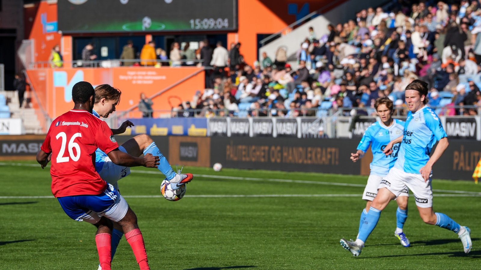 Tre serierunder før slutt kan vi altså sikre opprykk på søndag med tre poeng mot Brattvåg. Nærmeste motstander på tabellen, Sotra, som ligger 8 poeng bak oss, spiller lørdag hjemme mot Vard Haugesund. Avgir de poeng i den kampen, vil det holde med uavgjort for oss søndag for å sikre opprykket. (Foto: Nanco Hoogstad)